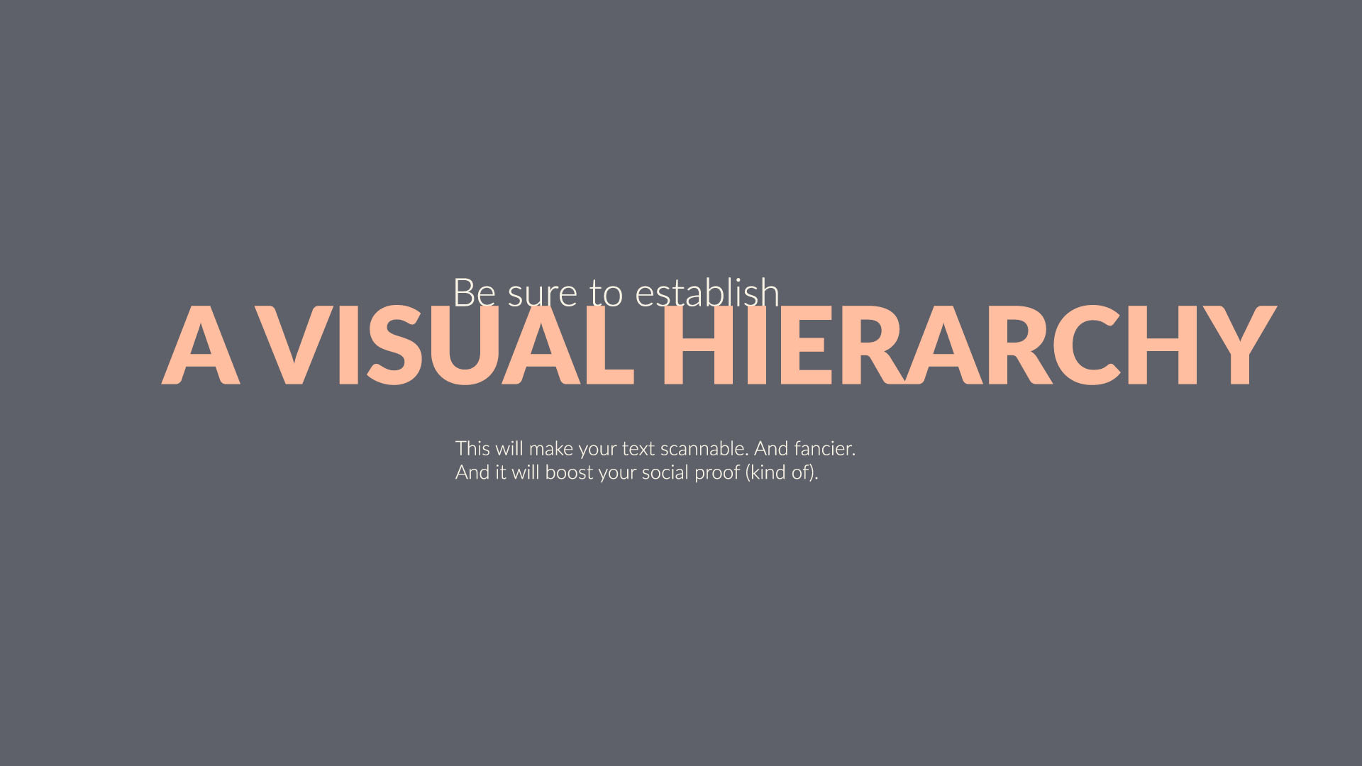 Establish a visual hierarchy to make text scannable. Ask these questions. What’s the key part? What part of the message should really pop? In what order do I want this to be read? How can I make it easier for the reader?